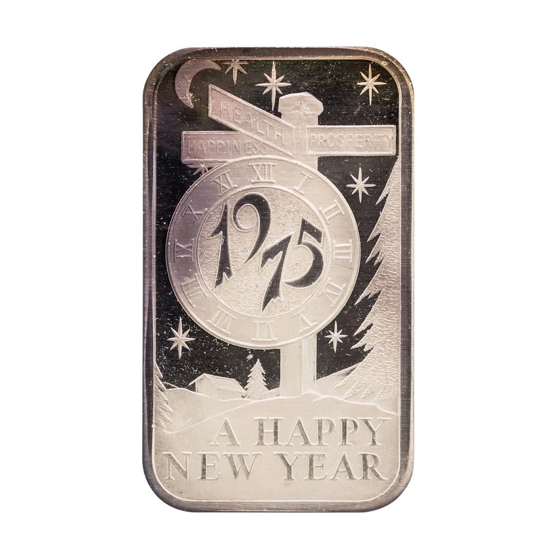 1975 Happy New Year Madison Mint 1 oz .999 Fine Silver Art Bar