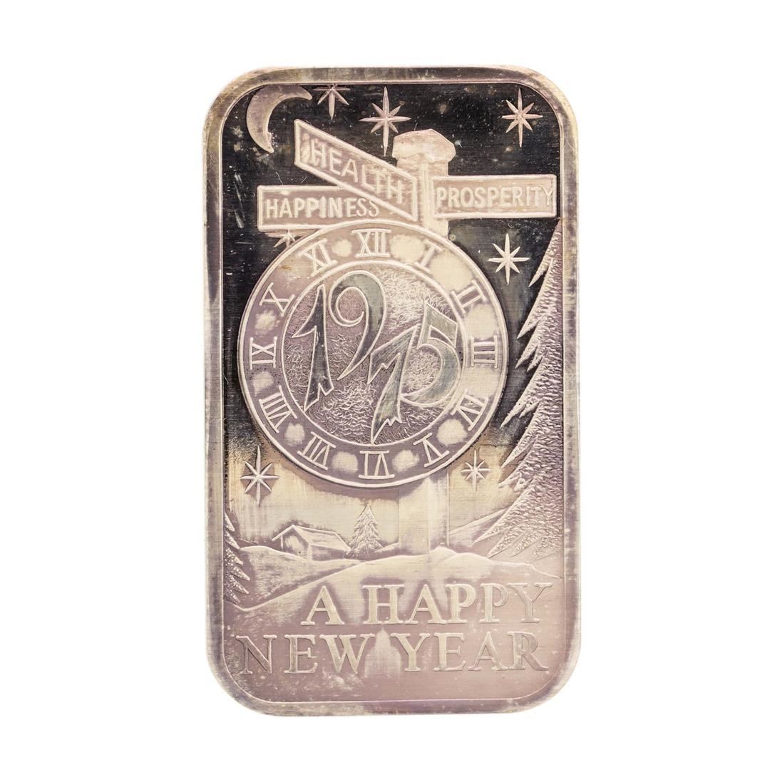 One 1975 Happy New Year Madison Mint 1 oz .999 Fine Silver Art Bar.