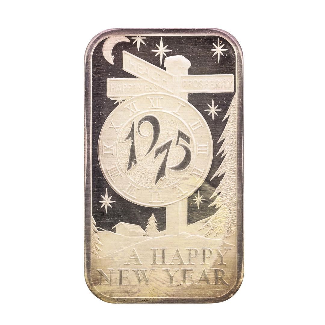One 1975 Happy New Year Madison Mint 1 oz .999 Fine Silver Art Bar.