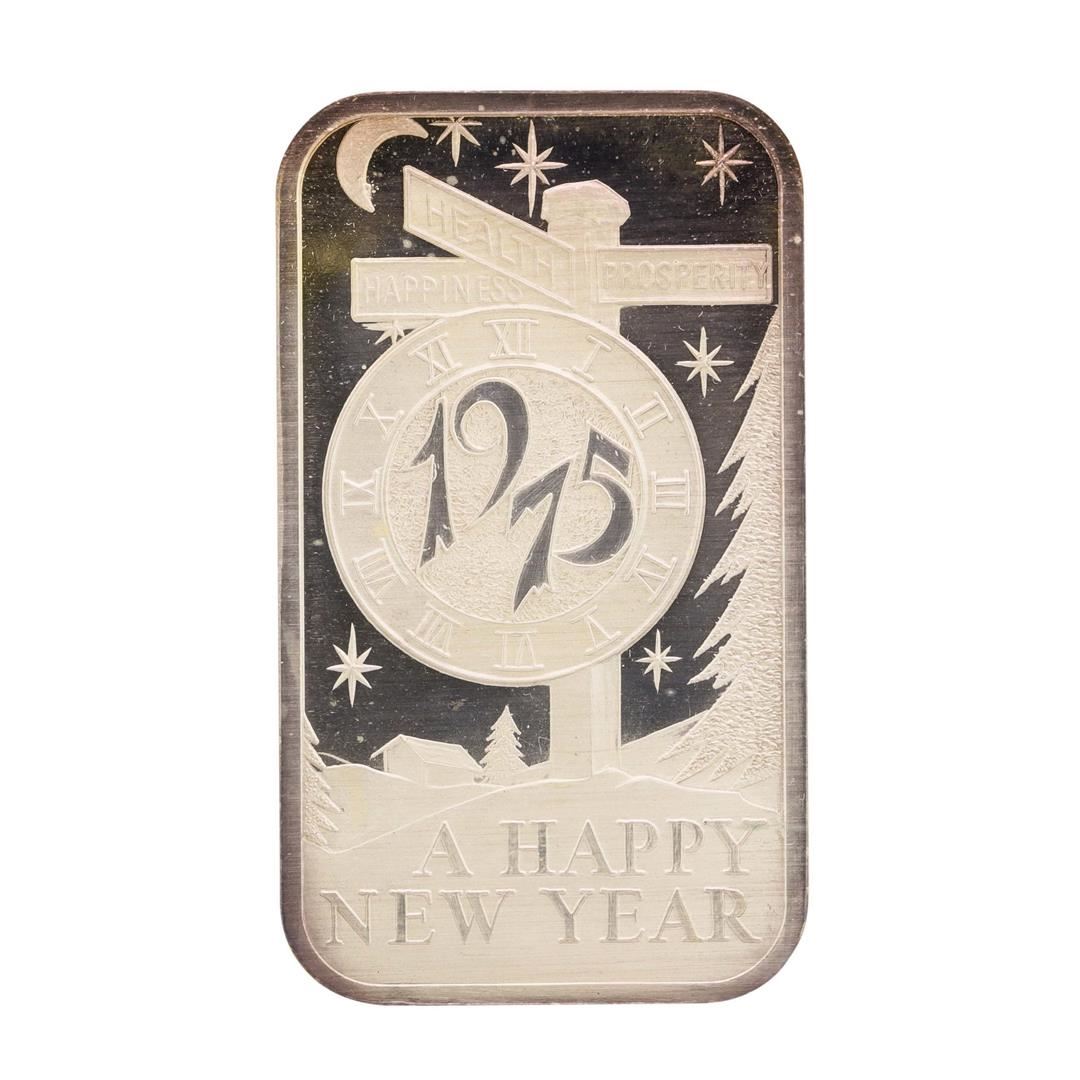 One 1975 Happy New Year Madison Mint 1 oz .999 Fine Silver Art Bar.