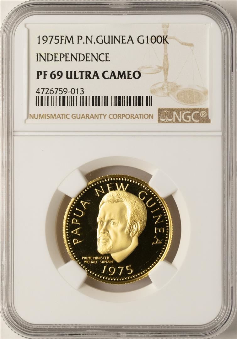 One 1975FM P.N. Guinea 100 K Independence NGC PF69 Ultra Cameo. NGC Certified.