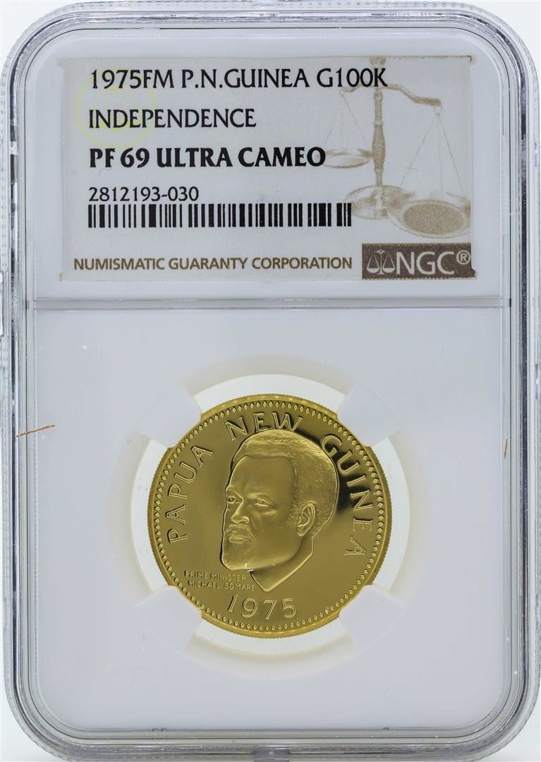 One 1975FM Papua New Guinea 100 Kina Independence Gold Coin NGC PF69 Ultra Cameo. NGC Certified.