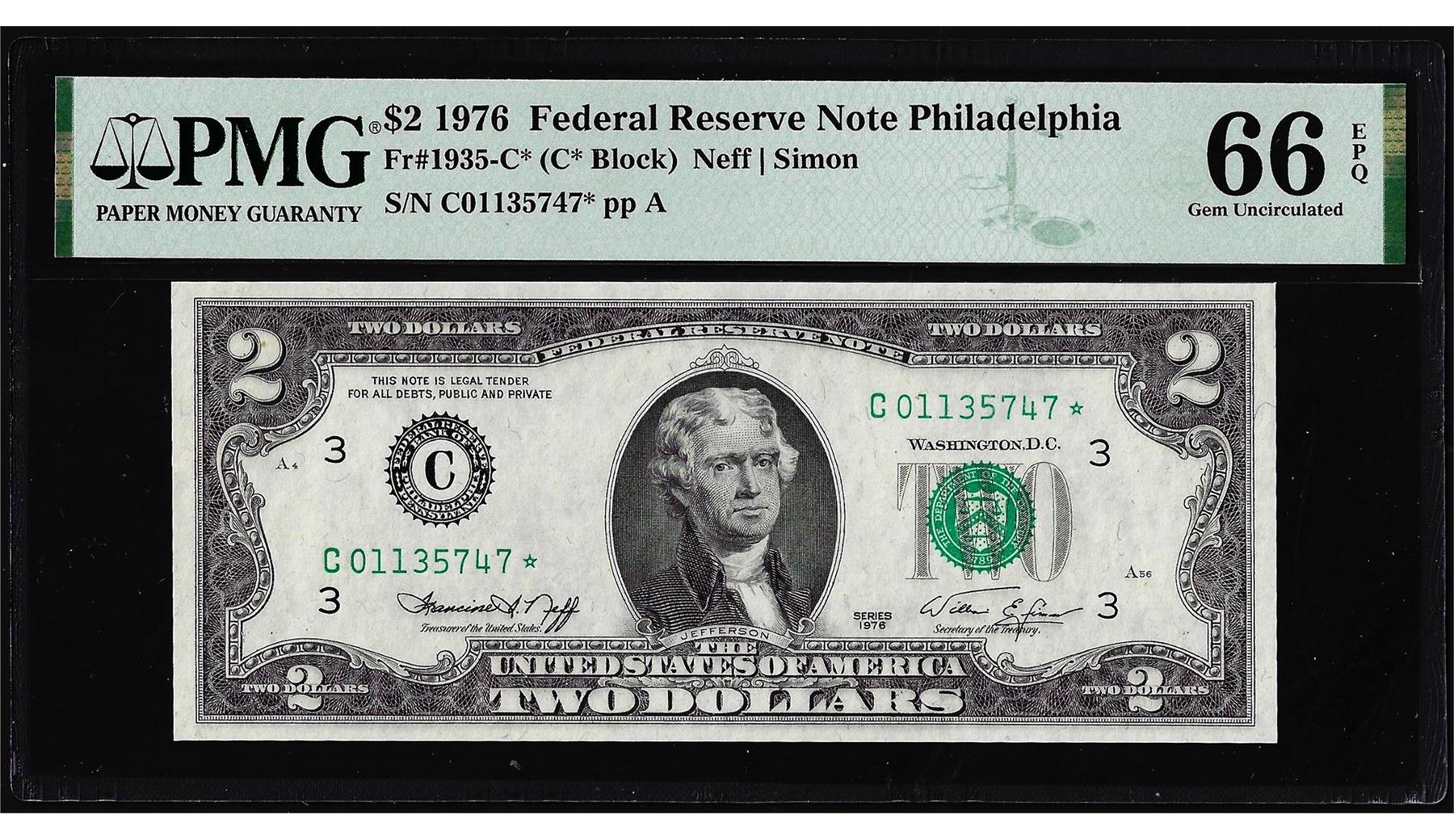 1976 $2 Federal Reserve STAR Note Fr.1935-C* Philadelphia PMG Gem Uncirculated 66EPQ