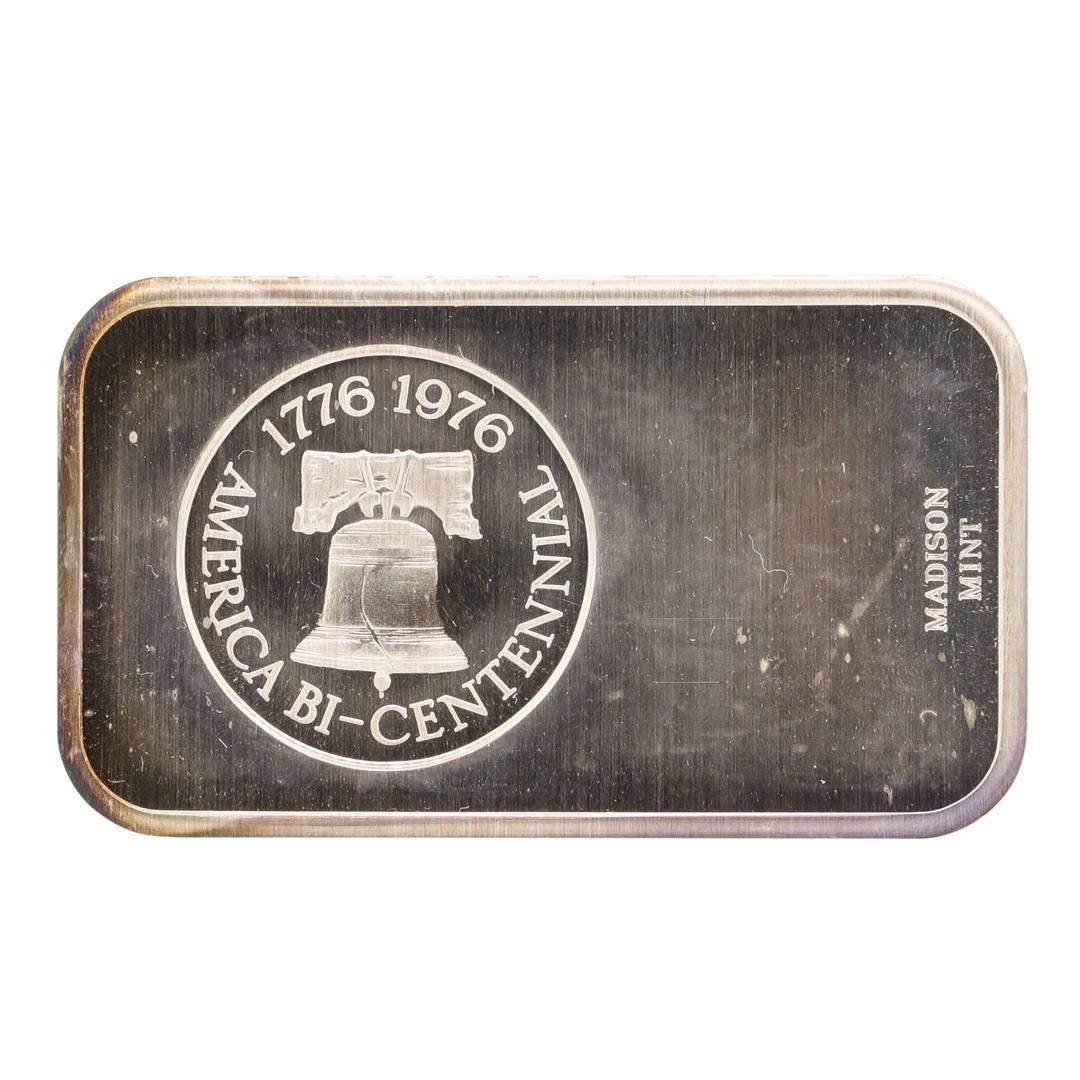 One 1976 America Bi-Centennial Madison Mint 1 oz .999 Fine Silver Art Bar.