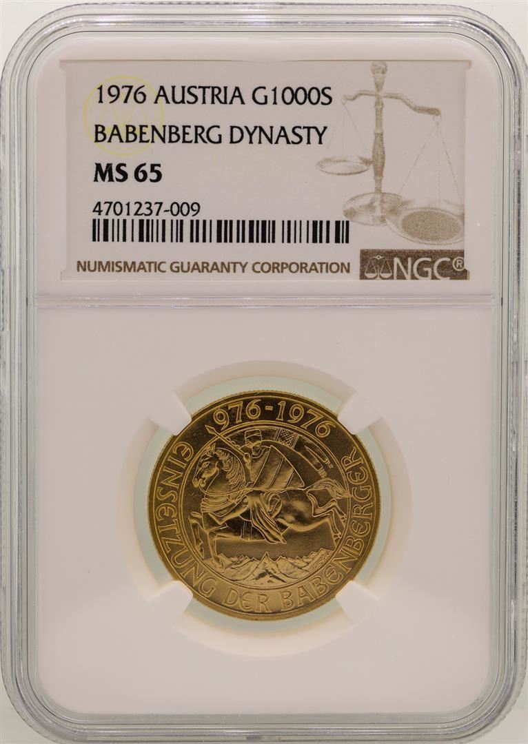 One 1976 Austria 1000 Schilling Babenberg Dynasty Gold Coin NGC MS65. NGC Certified.