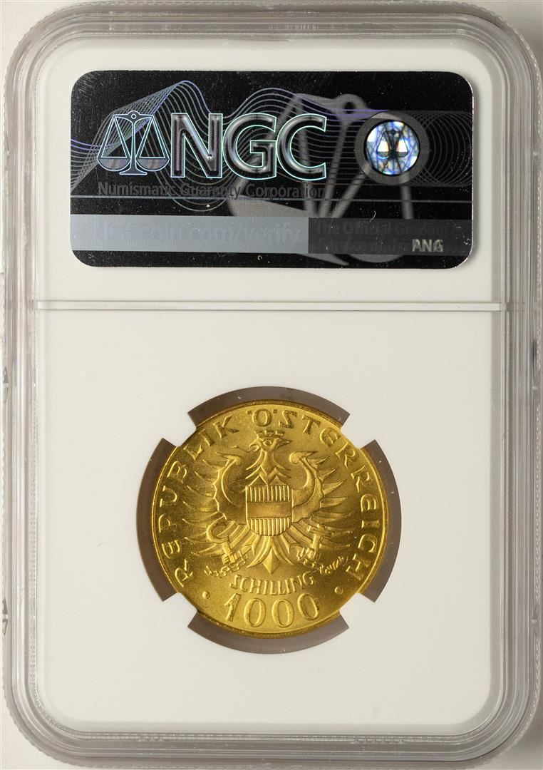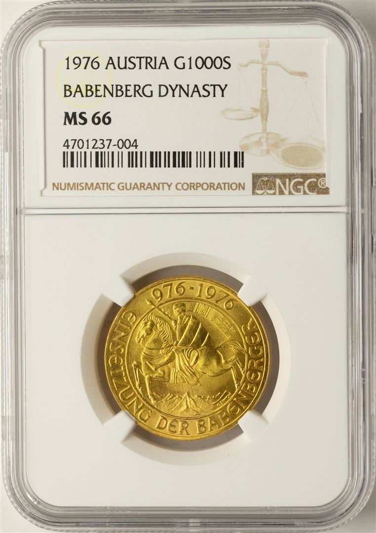 One 1976 Austria 1000 Schilling Babenberg Dynasty Gold Coin NGC MS66. NGC Certified.