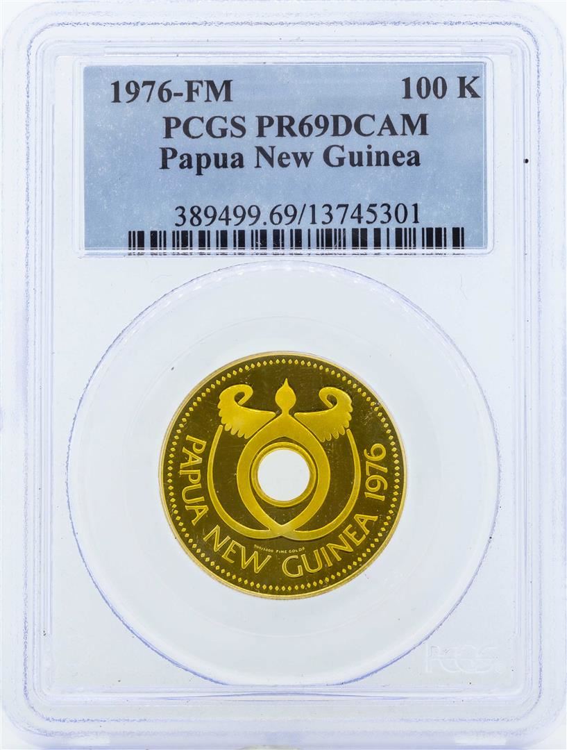 One 1976-FM Papua New Guinea 100 Kina Proof Gold Coin PCGS PR69DCAM. PCGS Graded.