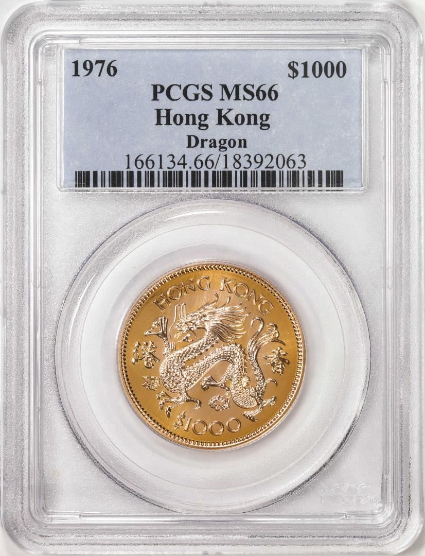 One 1976 Hong Kong $1000 Dragon Gold Coin PCGS MS66. PCGS Graded.
