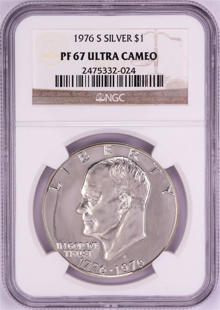 One 1976-S $1 Proof Eisenhower Silver Dollar Coin NGC PF67 Ultra Cameo. NGC Certified.