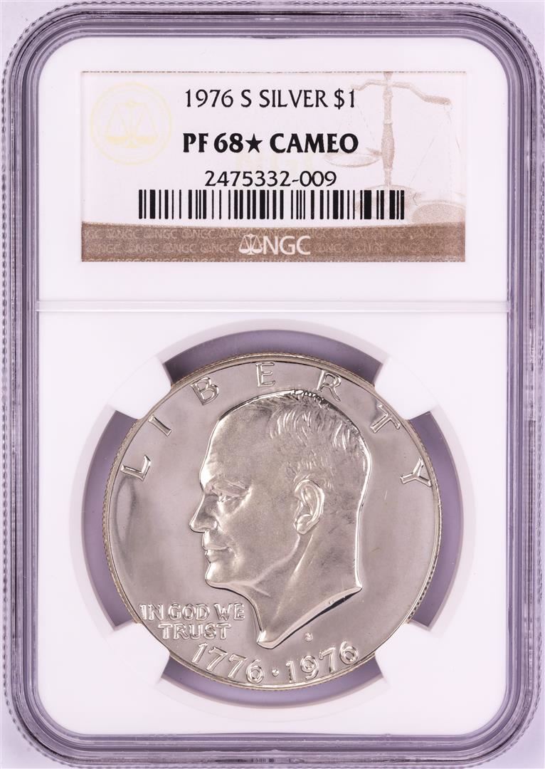 One 1976-S $1 Proof Eisenhower Silver Dollar Coin NGC PF68* Star Cameo. NGC Certified.