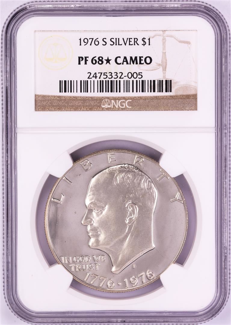 One 1976-S $1 Proof Eisenhower Silver Dollar Coin NGC PF68* Star Cameo. NGC Certified.