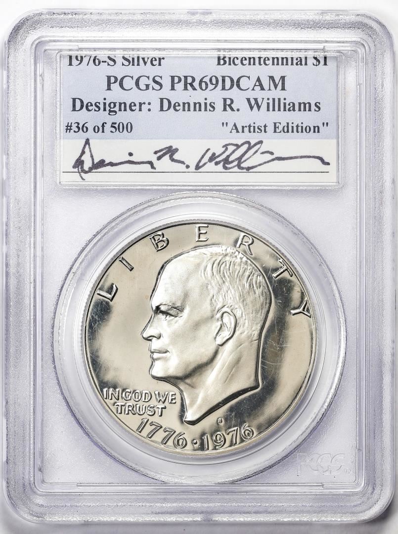 1976-S $1 Proof Eisenhower Silver Dollar Coin PCGS PR69DCAM Dennis Williams Signature