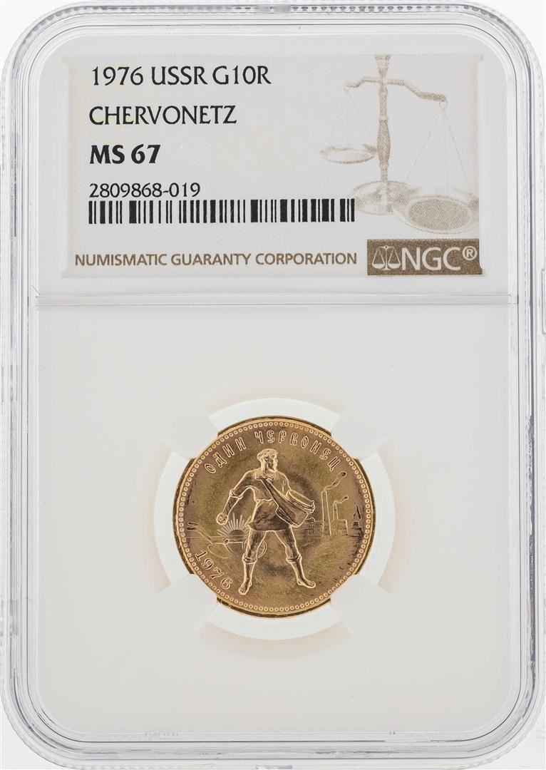 One 1976 USSR 10 Rouble Gold Coin NGC MS67. NGC Certified.
