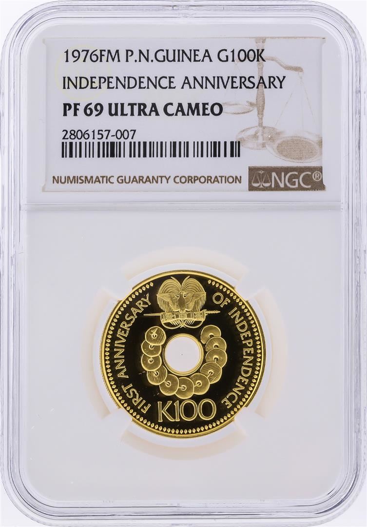 One 1976FM Papua New Guinea 100 Kina Proof Gold Coin NGC PF69 Ultra Cameo. NGC Certified.