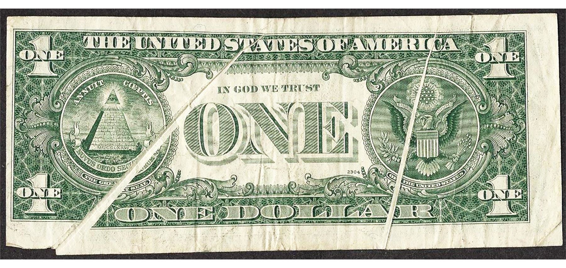 One 1977 $1 Federal Reserve Note Double Gutter Fold ERROR Note.