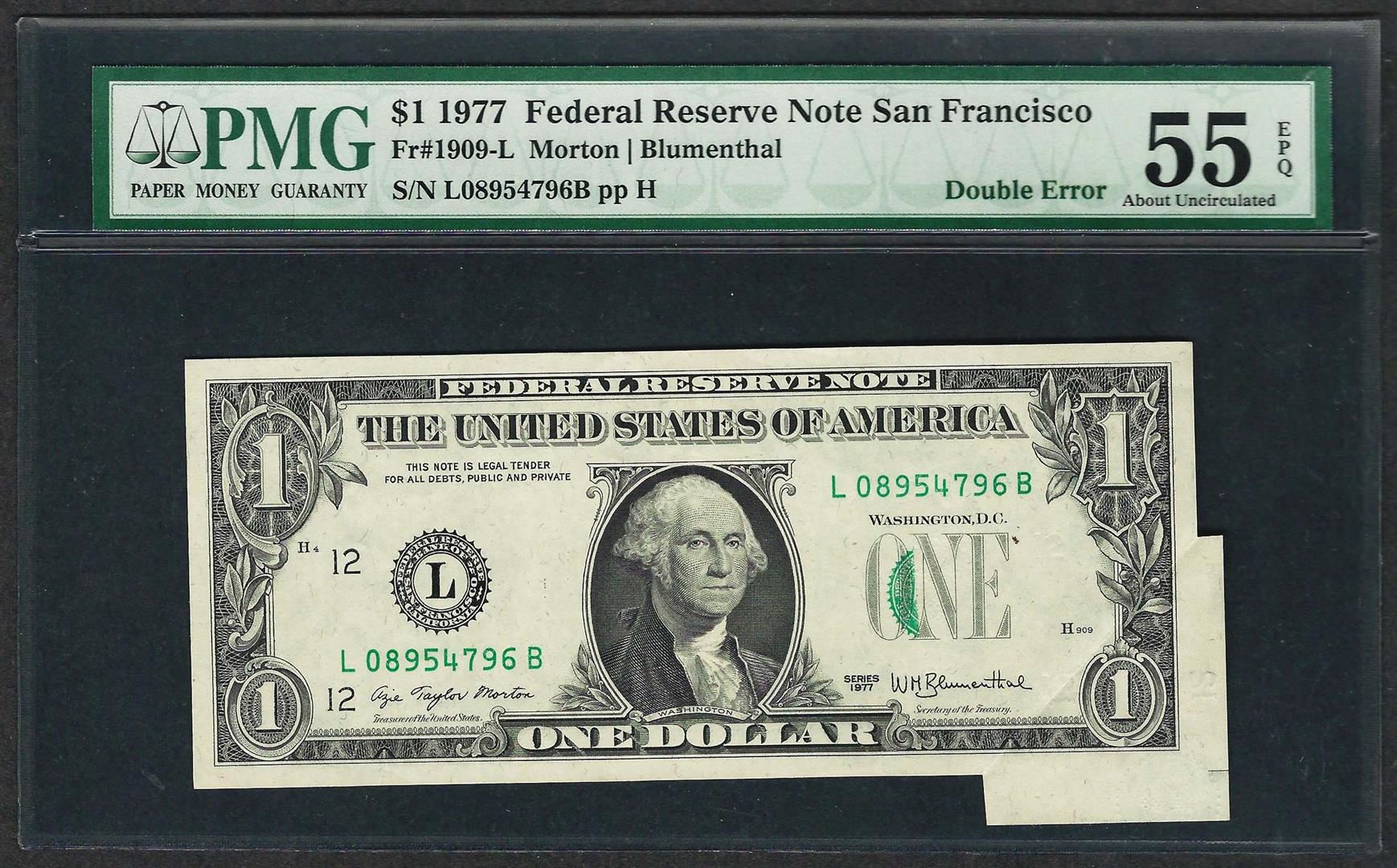 1977 $1 Federal Reserve Note ERROR Fold Over Butterfly Fold PMG AU 55EPQ