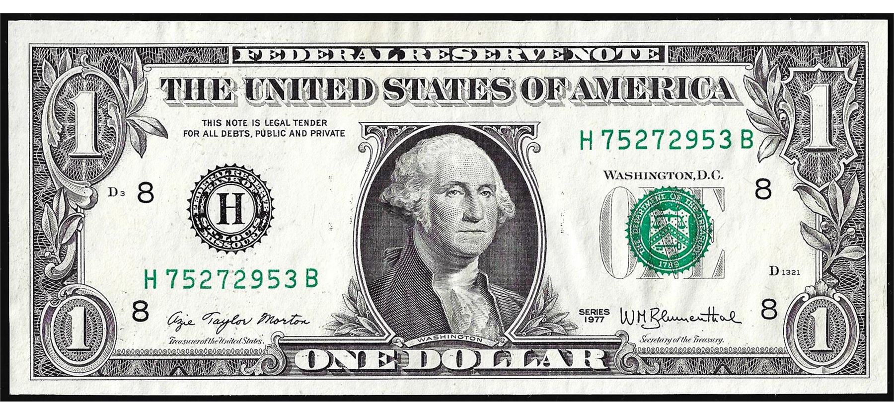 One 1977 $1 Federal Reserve Note Error Missing Back Print.