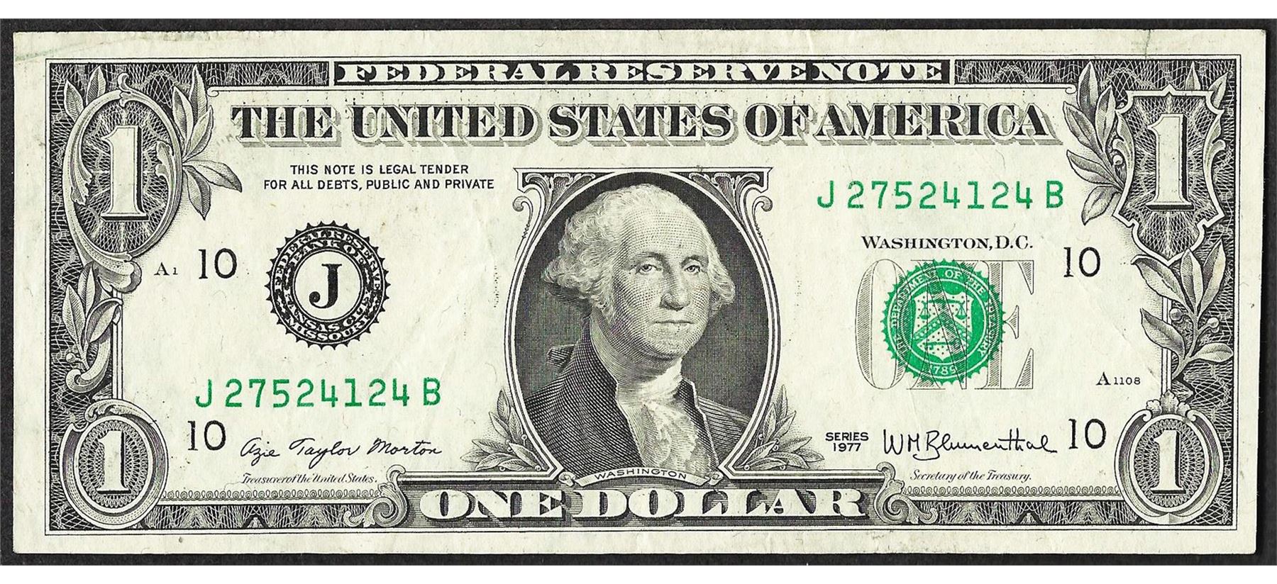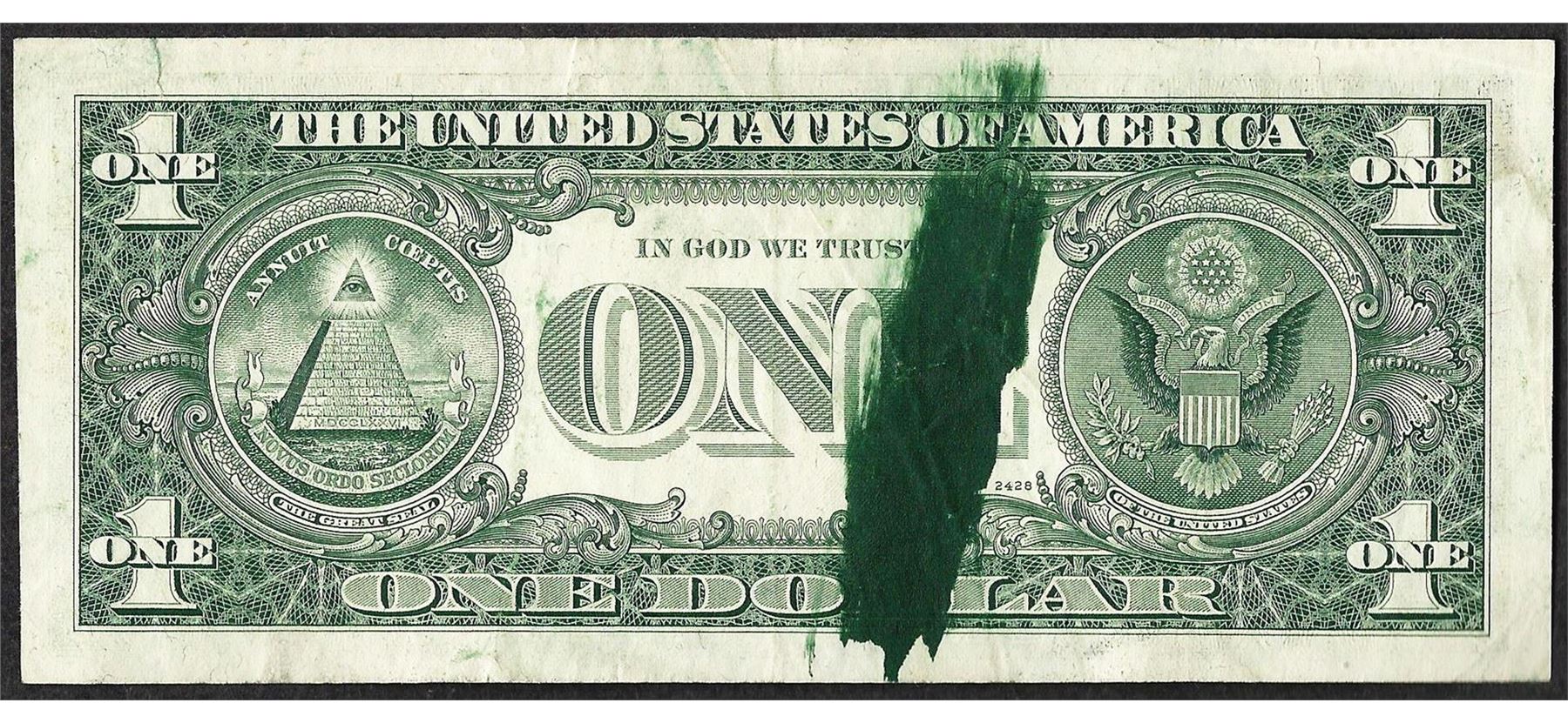 One 1977 $1 Federal Reserve Note Ink Smear ERROR.