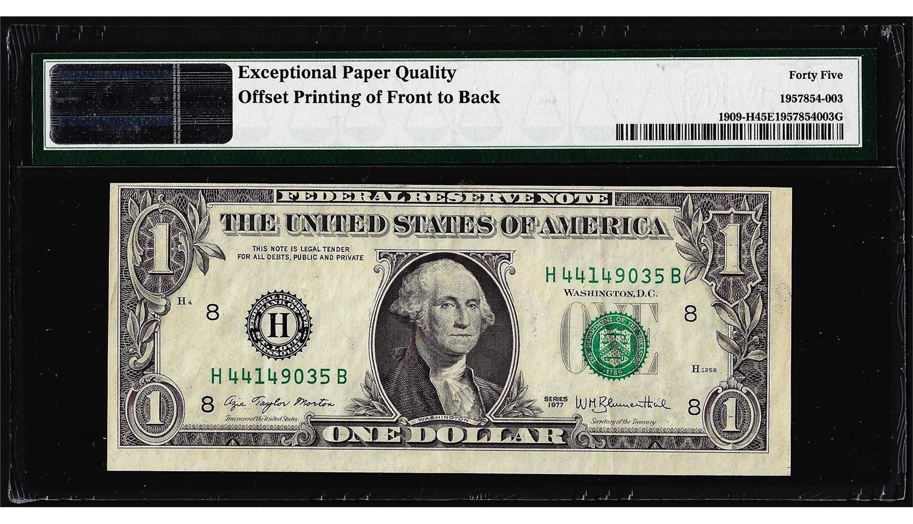 1977 $1 Federal Reserve Note Offset Printing ERROR PMG Choice Extremely Fine 45EPQ