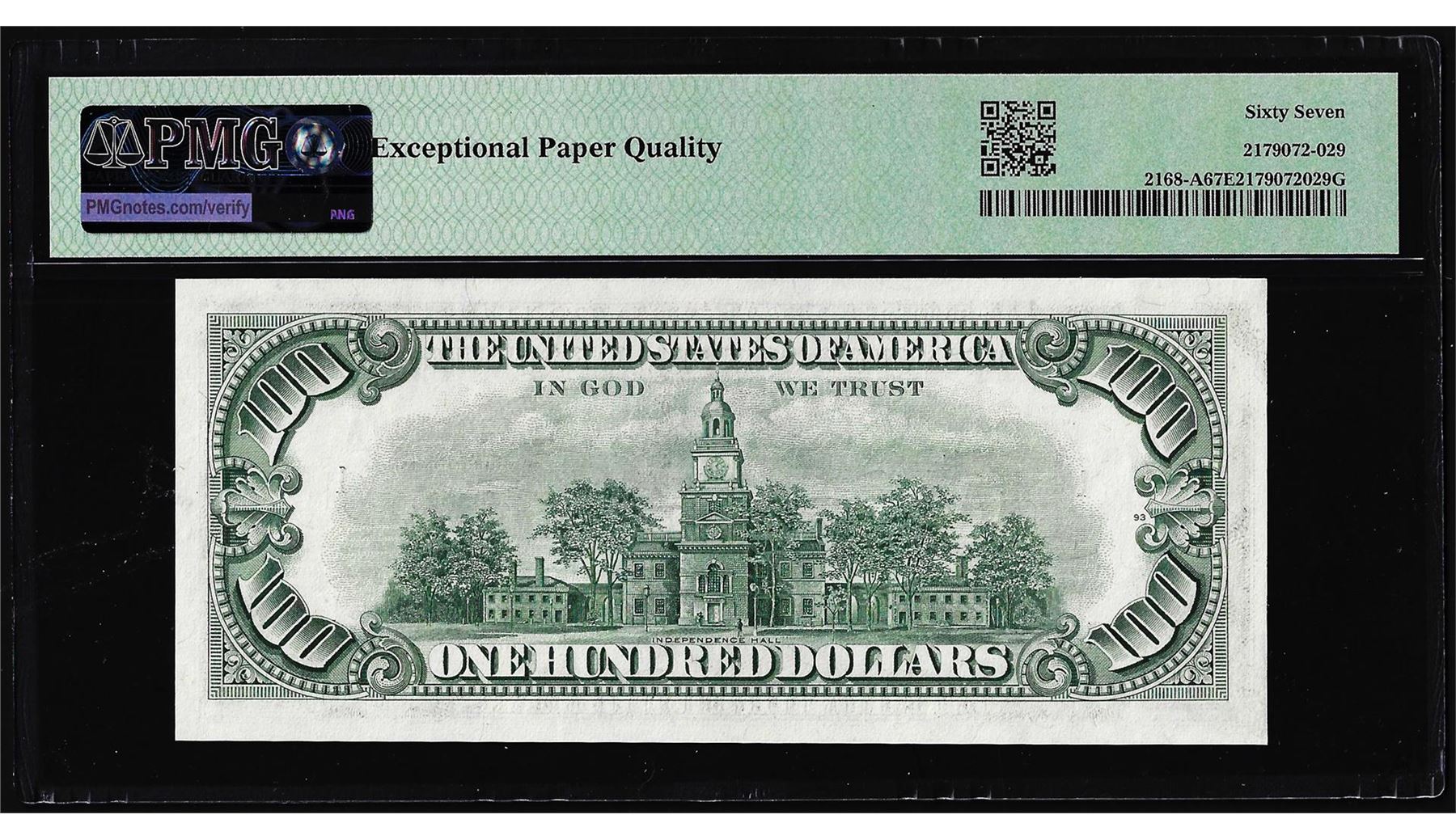 One 1977 $100 Federal Reserve Note Boston Fr.2168-A PMG Superb Gem Uncirculated 67EPQ. PMG Certified.