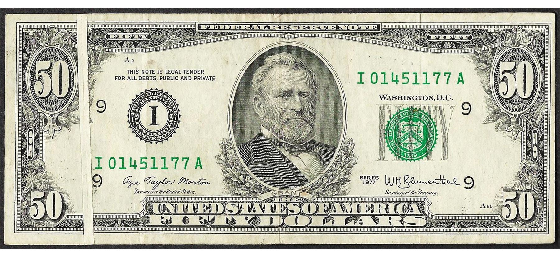 One 1977 $50 Federal Reserve Note ERROR Gutter Fold.
