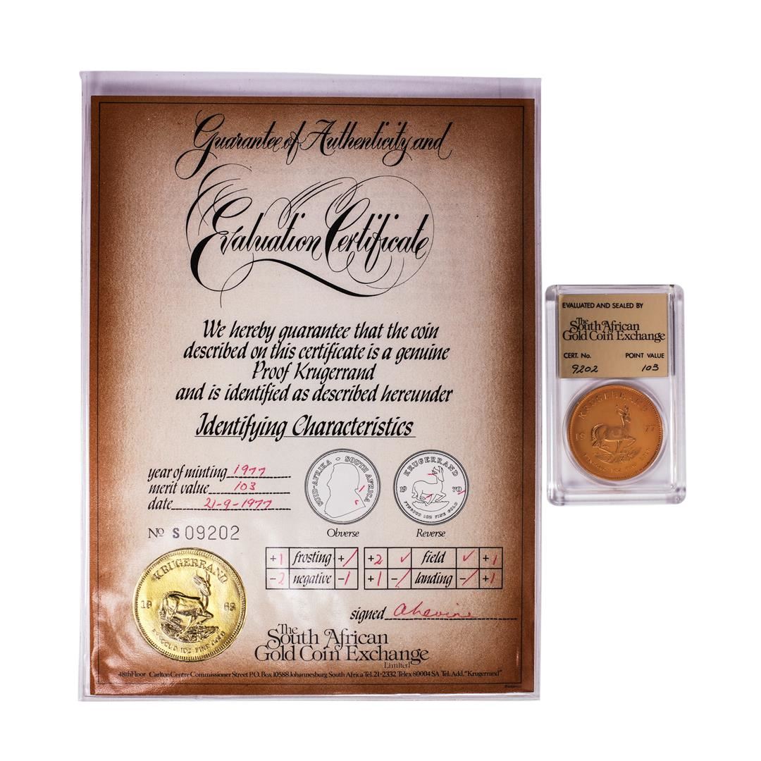 One 1977 Proof South Africa 1oz Krugerrand Gold Coin w/COA.
