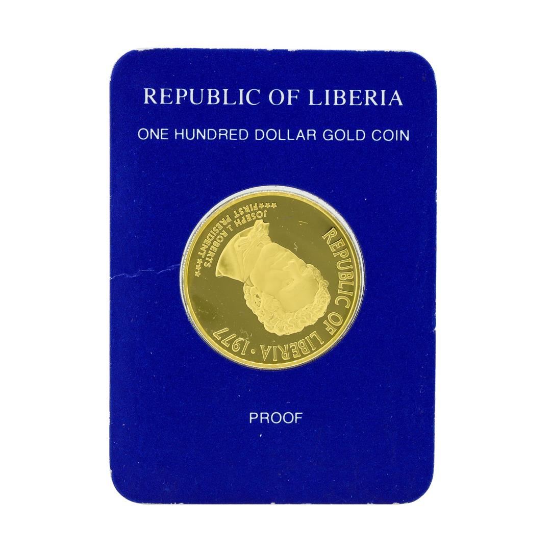 One 1977 Republic of Liberia $100 Gold Proof Coin.
