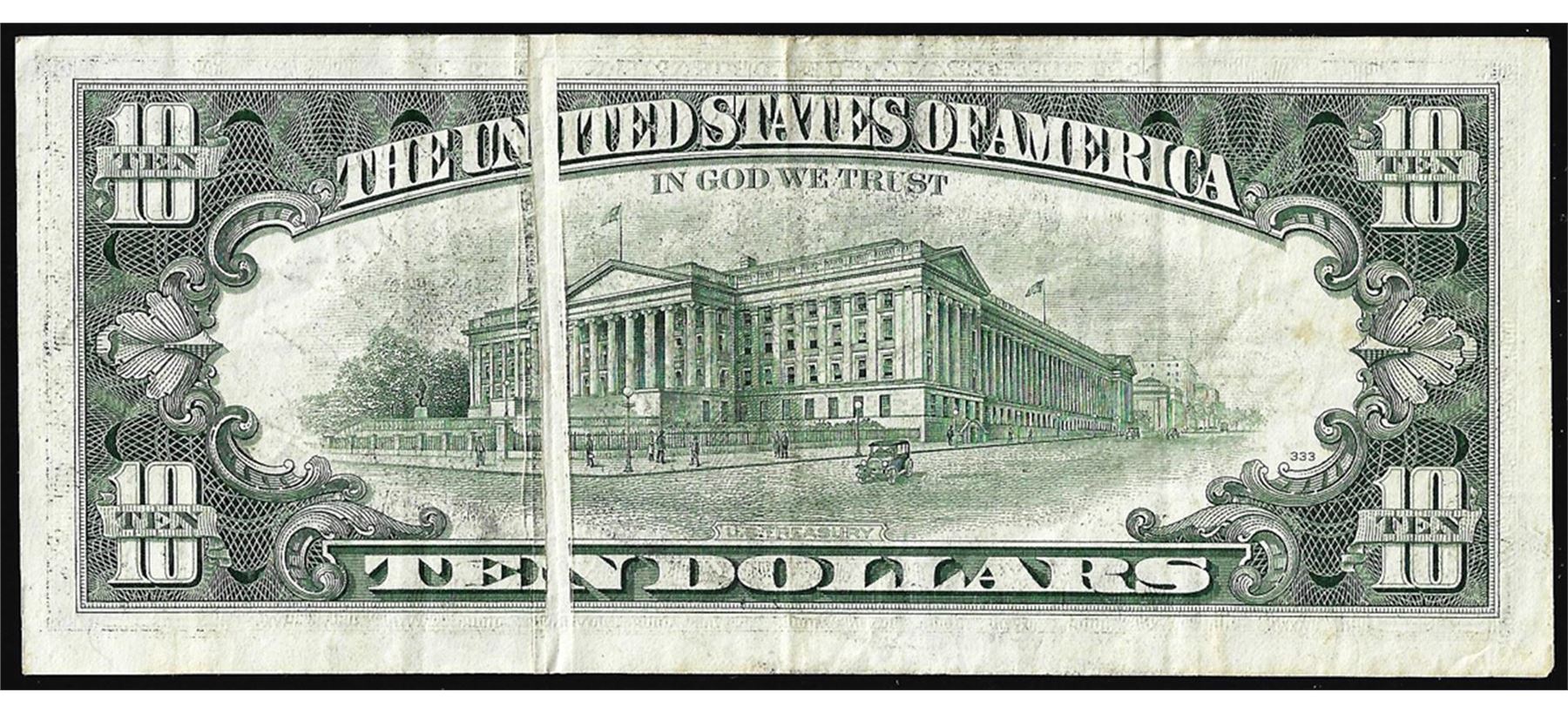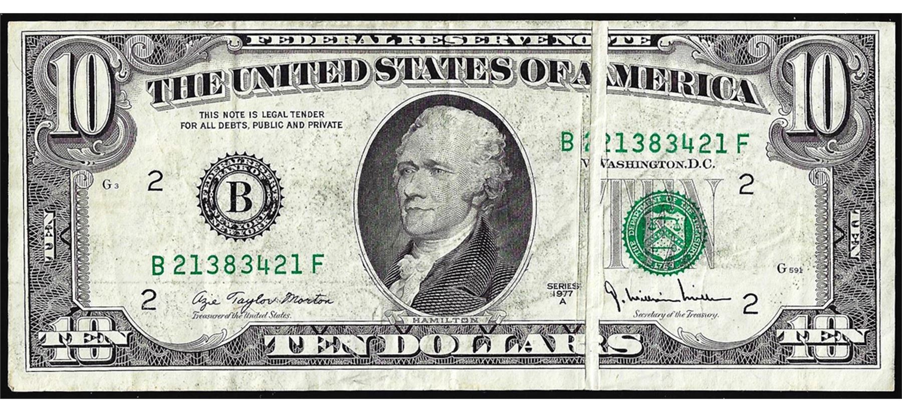One 1977A $10 Federal Reserve Note Gutter Fold ERROR.