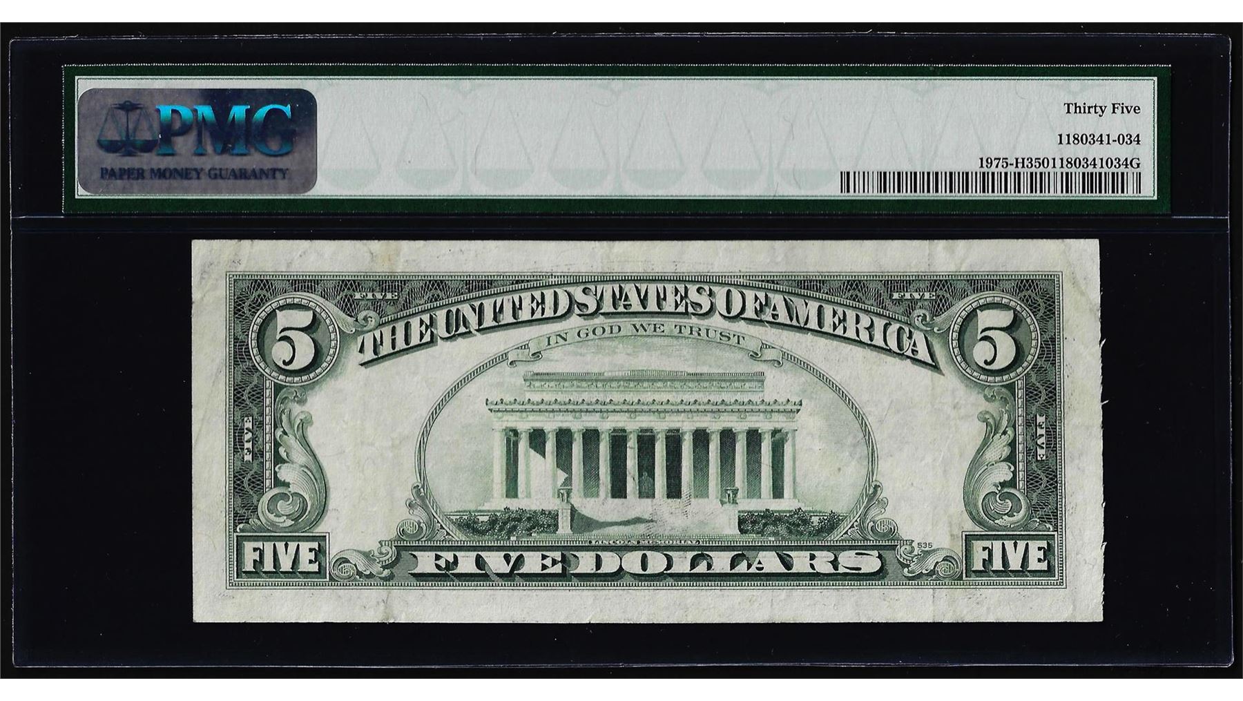 One 1977A $5 Federal Reserve Note Mismatched Serial Number ERROR PMG Very Fine 35. PMG Certified.