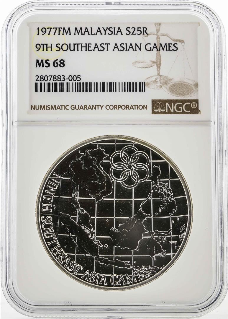One 1977FM Malaysia 25 Ringgit Silver Coin NGC MS68. NGC Certified.