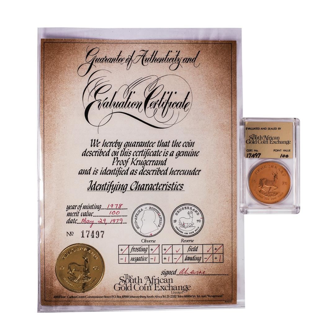 One 1978 Proof South Africa 1oz Krugerrand Gold Coin w/COA.
