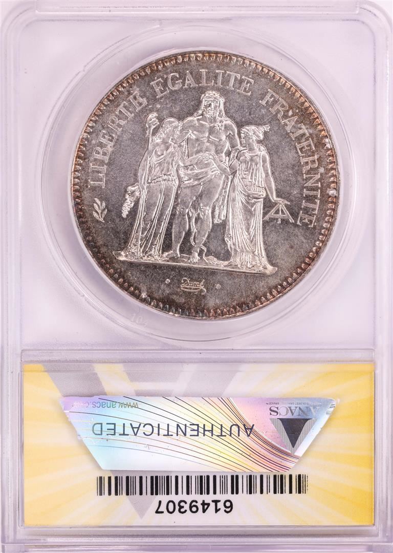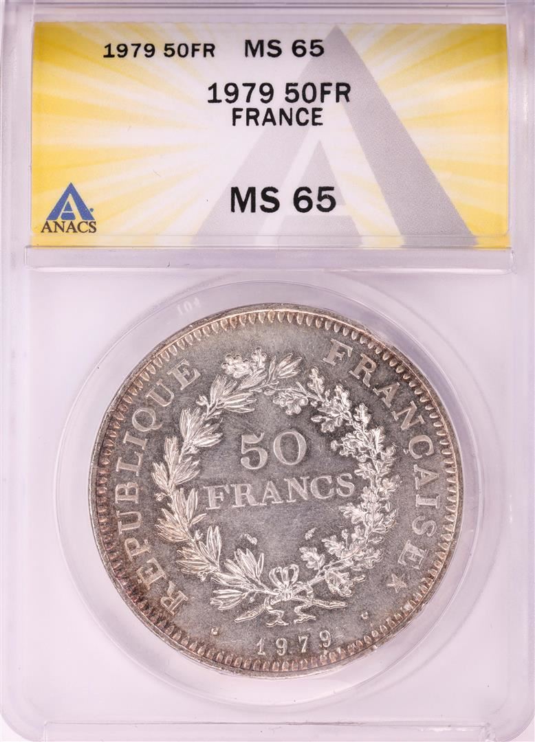 One 1979 France 50 Francs Hercules Silver Coin ANACS MS65. ANACS Certified.