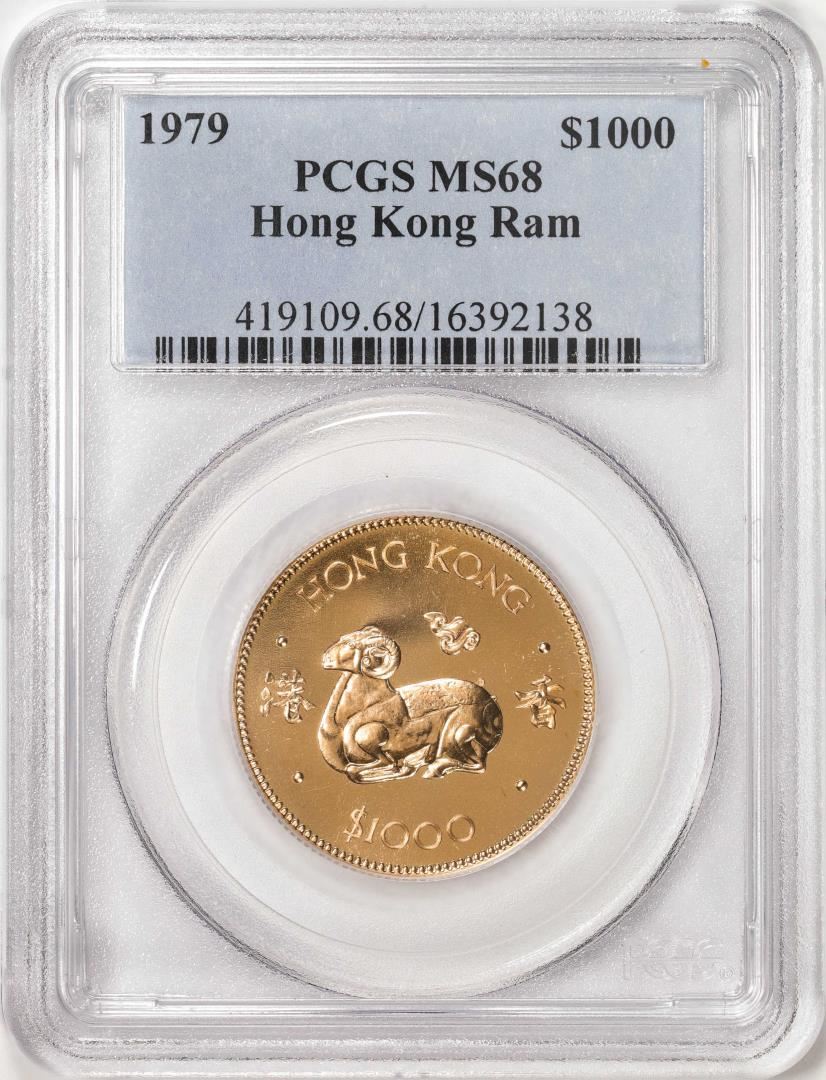 One 1979 Hong Kong $1000 Ram Gold Coin PCGS MS68. PCGS Graded.