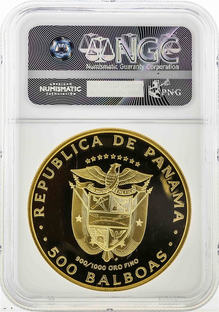 One 1979FM Panama 500 Balboas Golden Jaguar Coin NGC PF70 Ultra Cameo. NGC Certified.