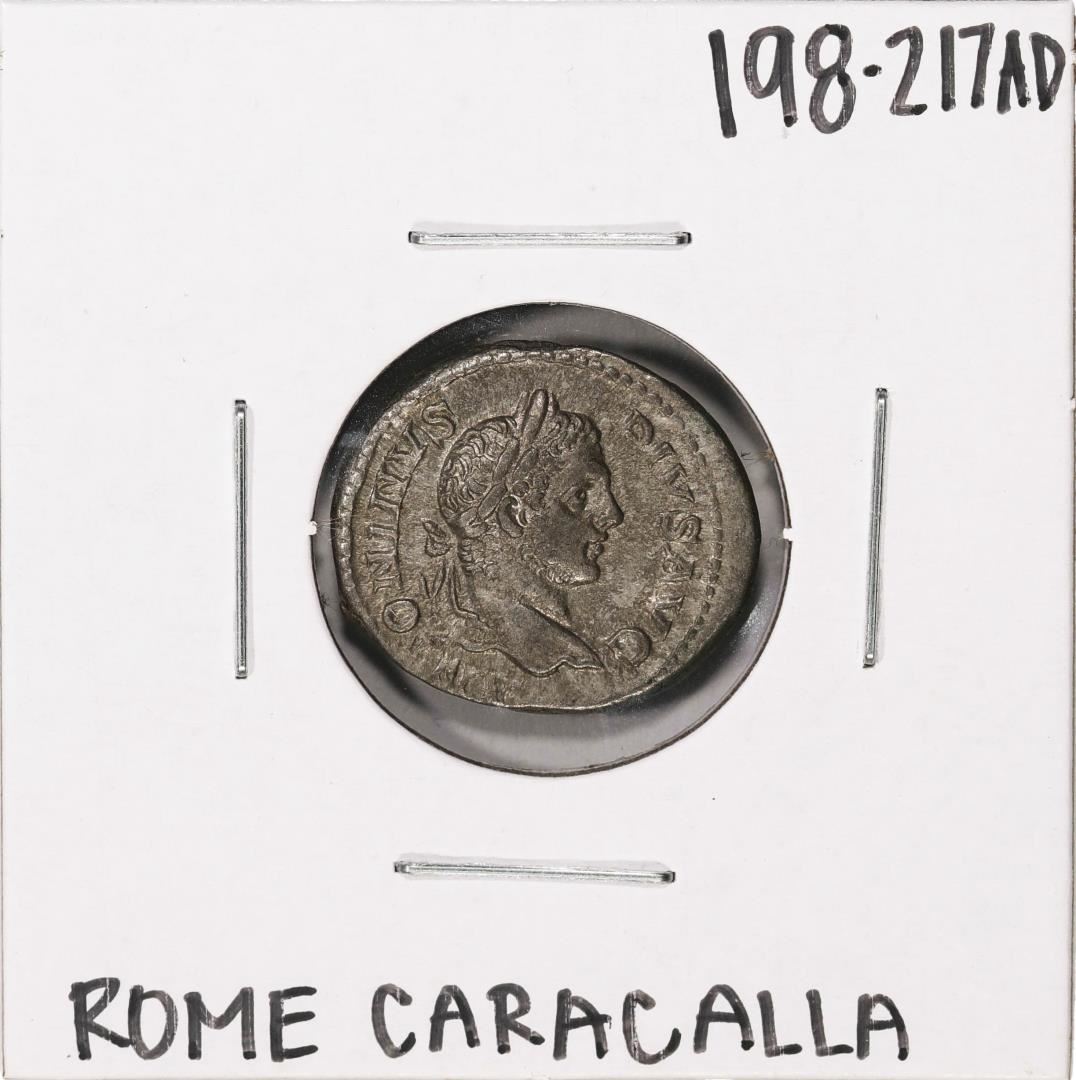 One 198-217AD Roman Empire Caracalla AR Denarius Ancient Silver Coin.