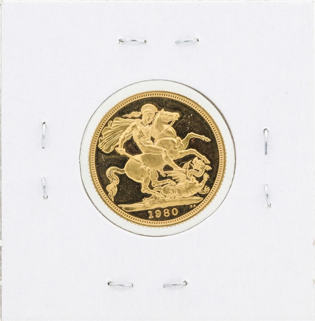 One 1980 Elizabeth II Gold Sovereign coin.