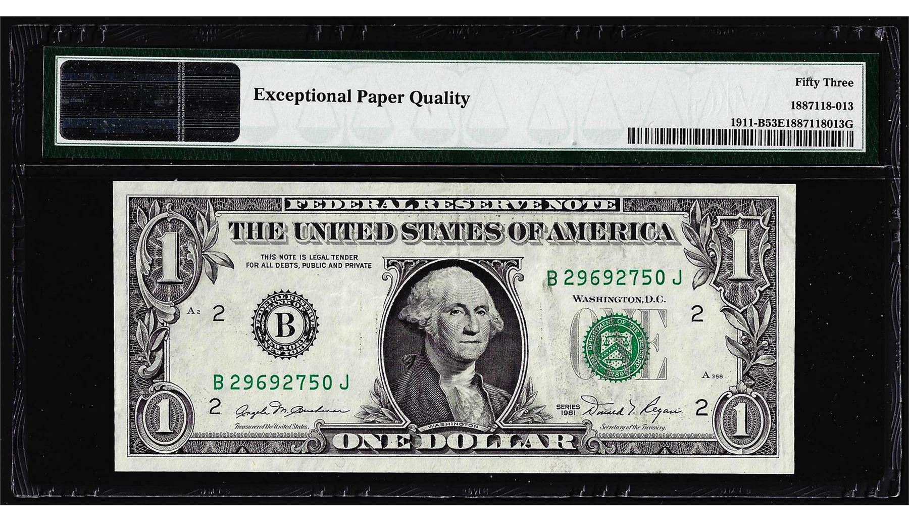 1981 $1 Federal Reserve Note New York Ink Smear ERROR PMG About Uncirculated 53EPQ