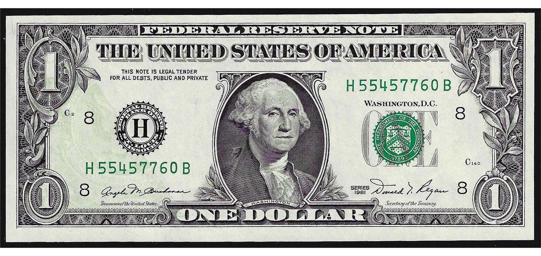 One 1981 $1 Federal Reserve Note Offset ERROR.