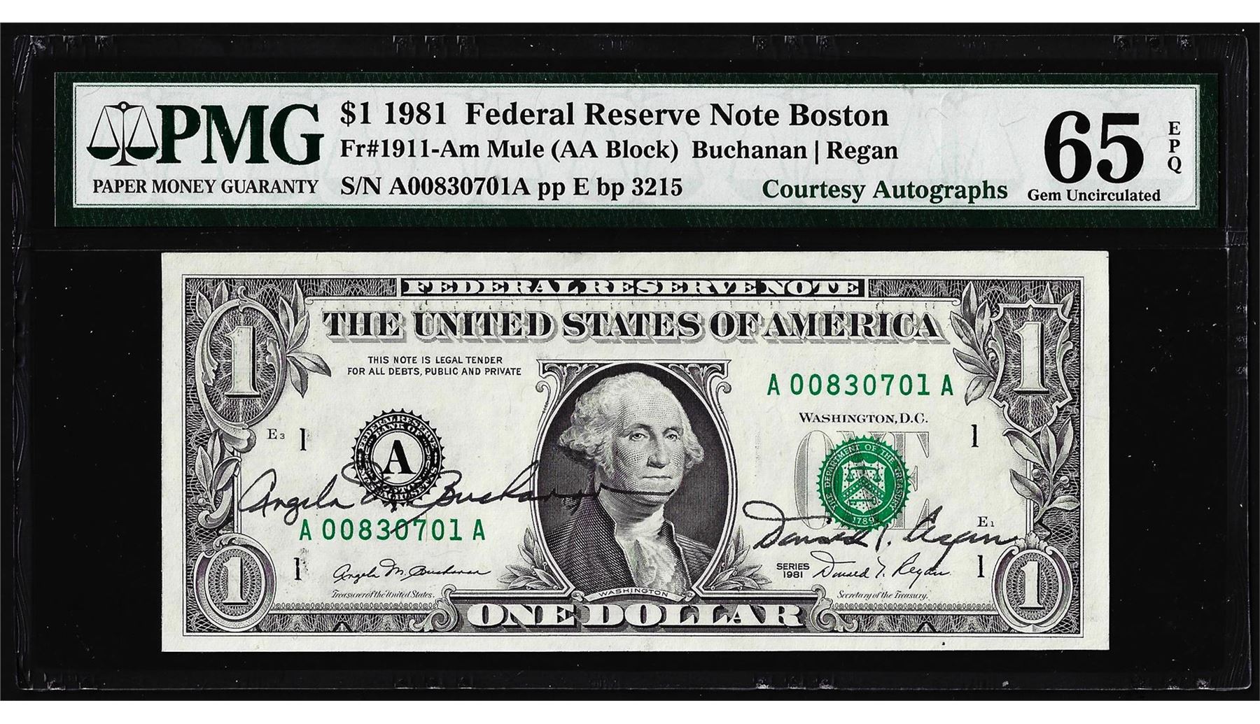 1981 $1 Federal Reserve Note PMG Gem Uncirculated 65EPQ Dual Courtesy Autographs