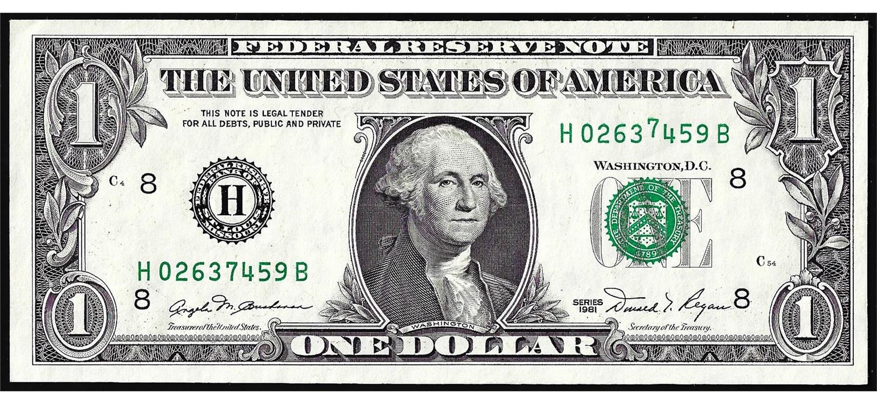 One 1981 $1 Federal Reserve Stuck Digit Error Note St. Louis.