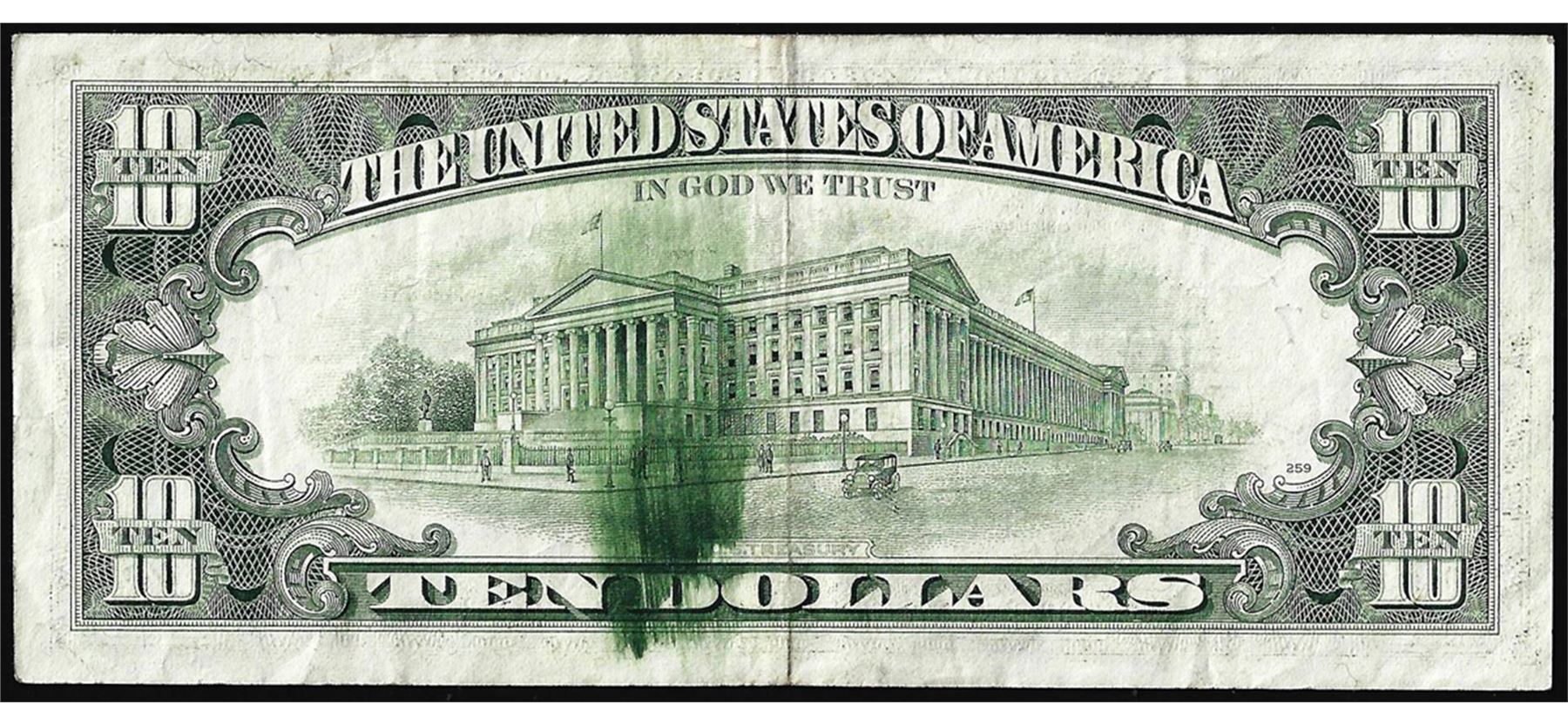 One 1981 $10 Federal Reserve Note Chicago Ink Smear ERROR.