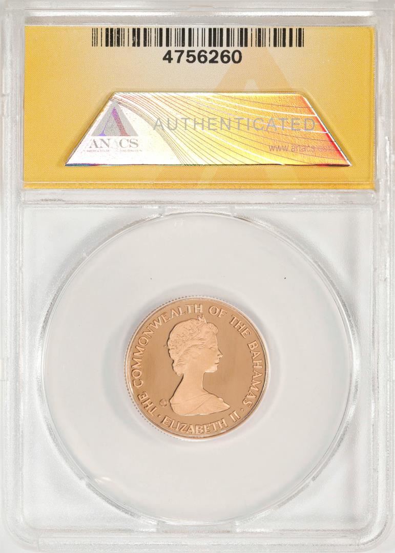 One 1981 $100 Proof Bahamas Royal Wedding Gold Coin ANACS PF69DCAM. ANACS Certified.