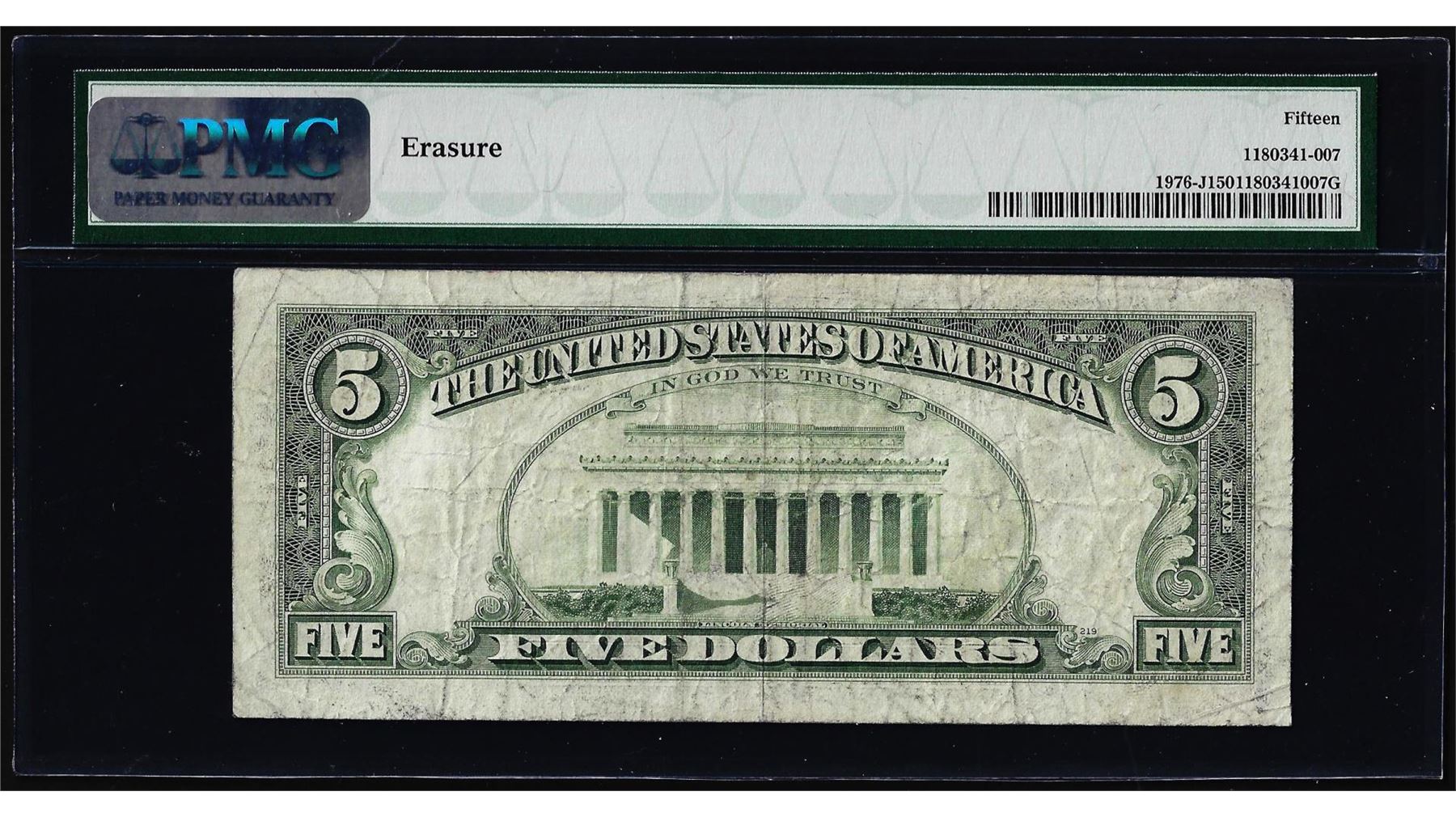 One 1981 $5 Federal Reserve Note Mismatched Prefix Error Fr.1976-J PMG Choice Fine 15. PMG Certified.
