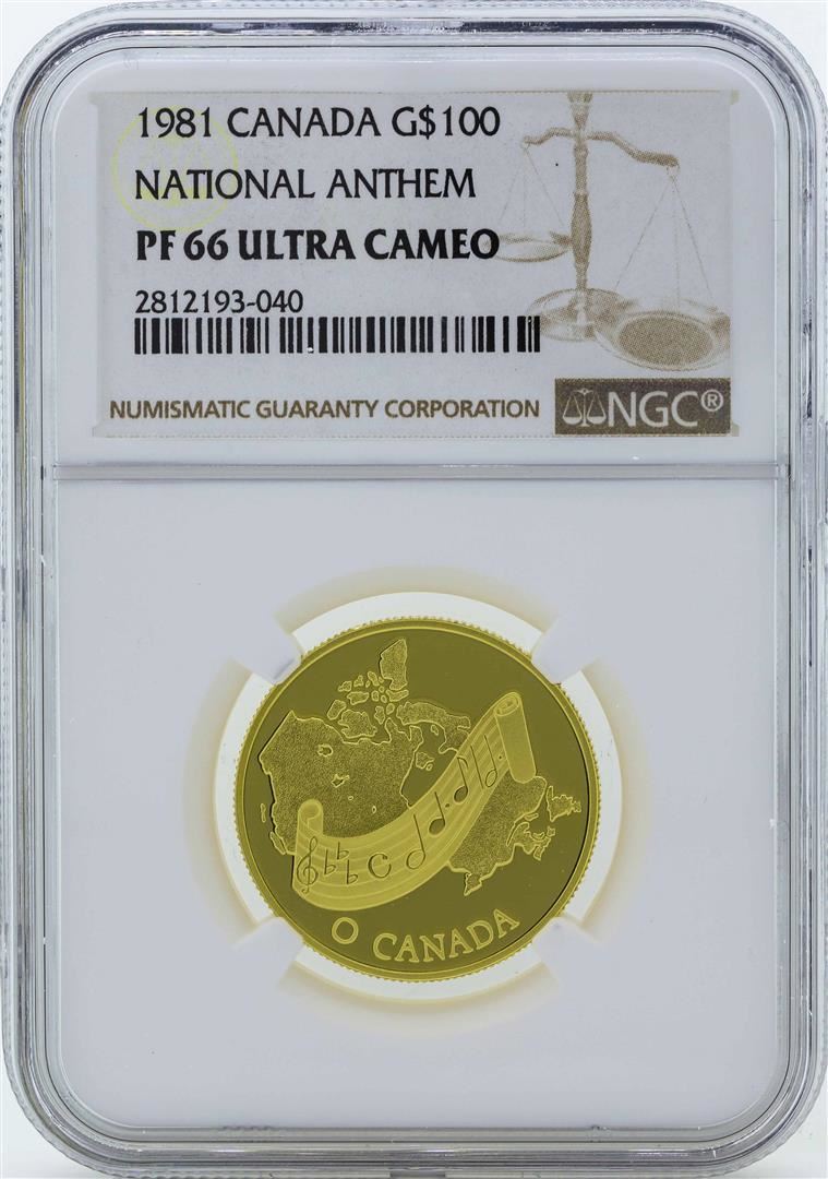 1981 Canada $100 National Anthem Gold Coin NGC PF66 Ultra Cameo