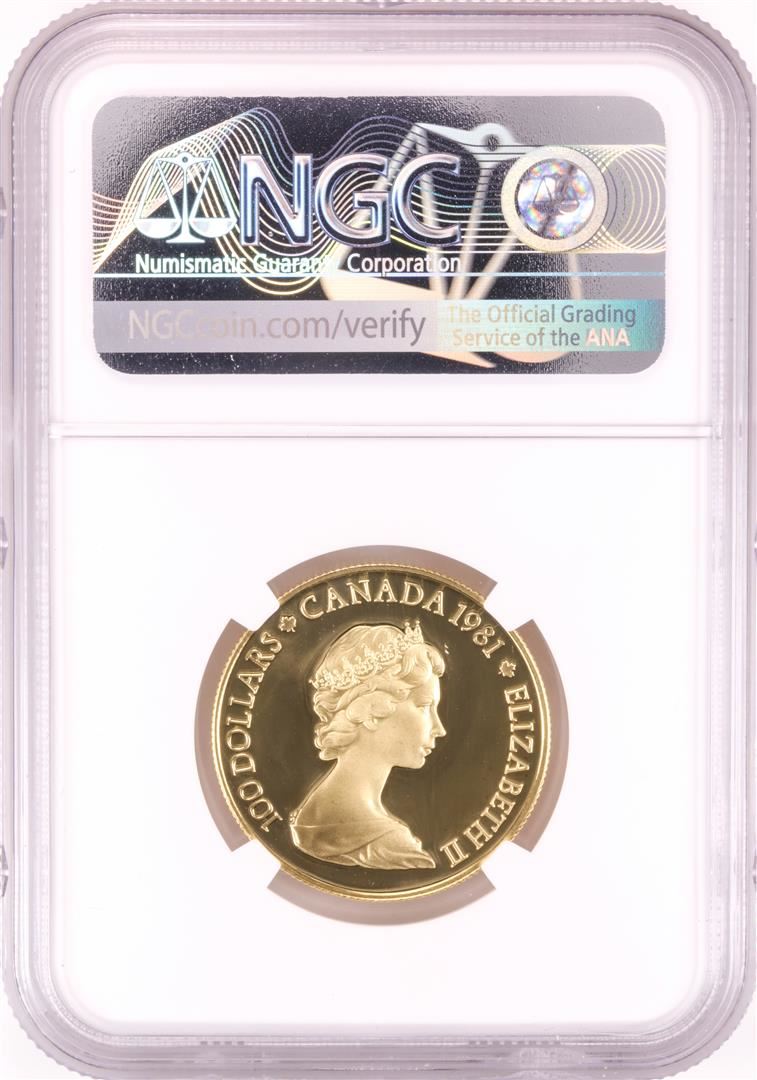 One 1981 Proof Canada $100 National Anthem 1/2 oz Gold Coin NGC PF 69 Ultra Cameo. NGC Certified.