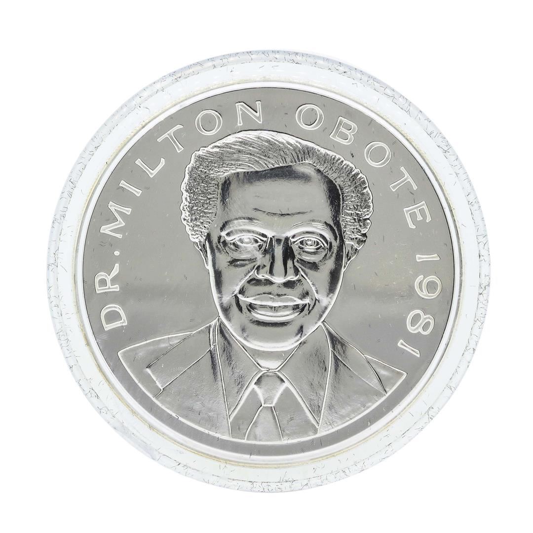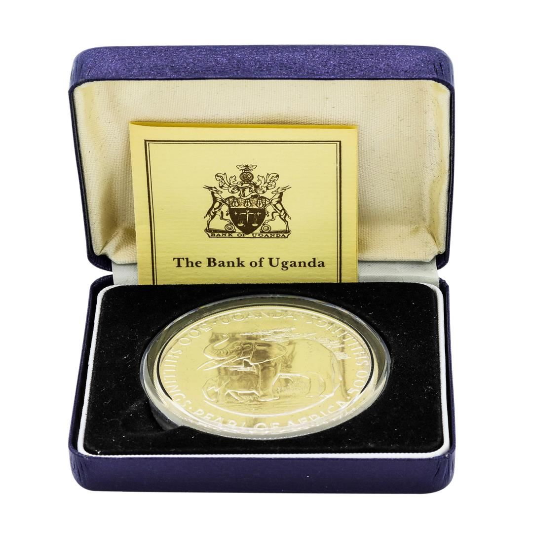 One 1981 Uganda 4 oz. Silver 500 Shillings Proof Pearl of Africa Coin.