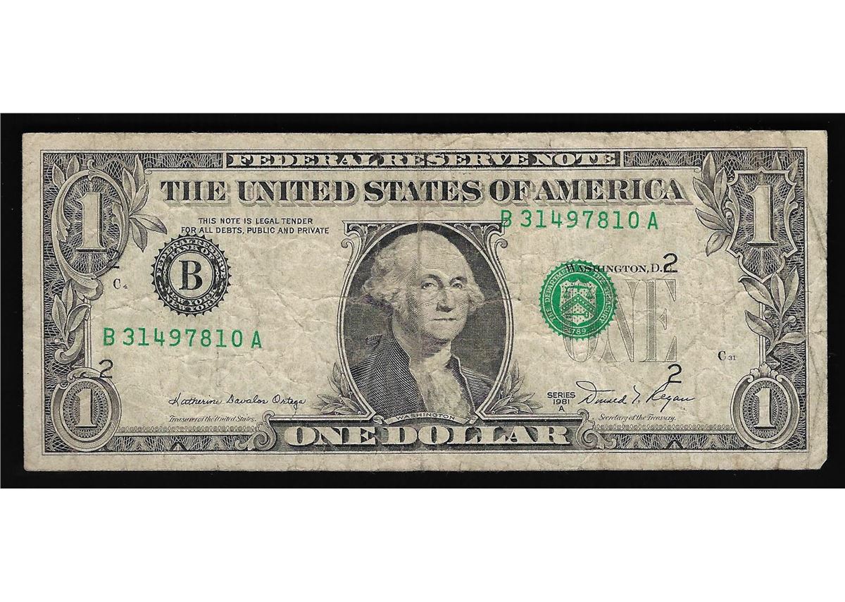 One 1981A $1 Federal Reserve Note Misalignment ERROR.