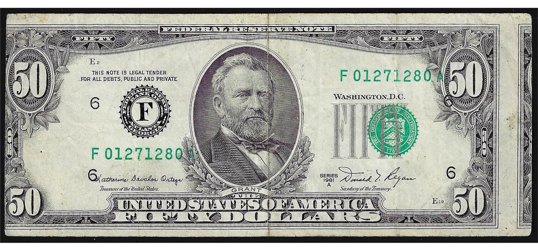 One 1981A $50 Federal Reserve Note Misaligned Face ERROR.