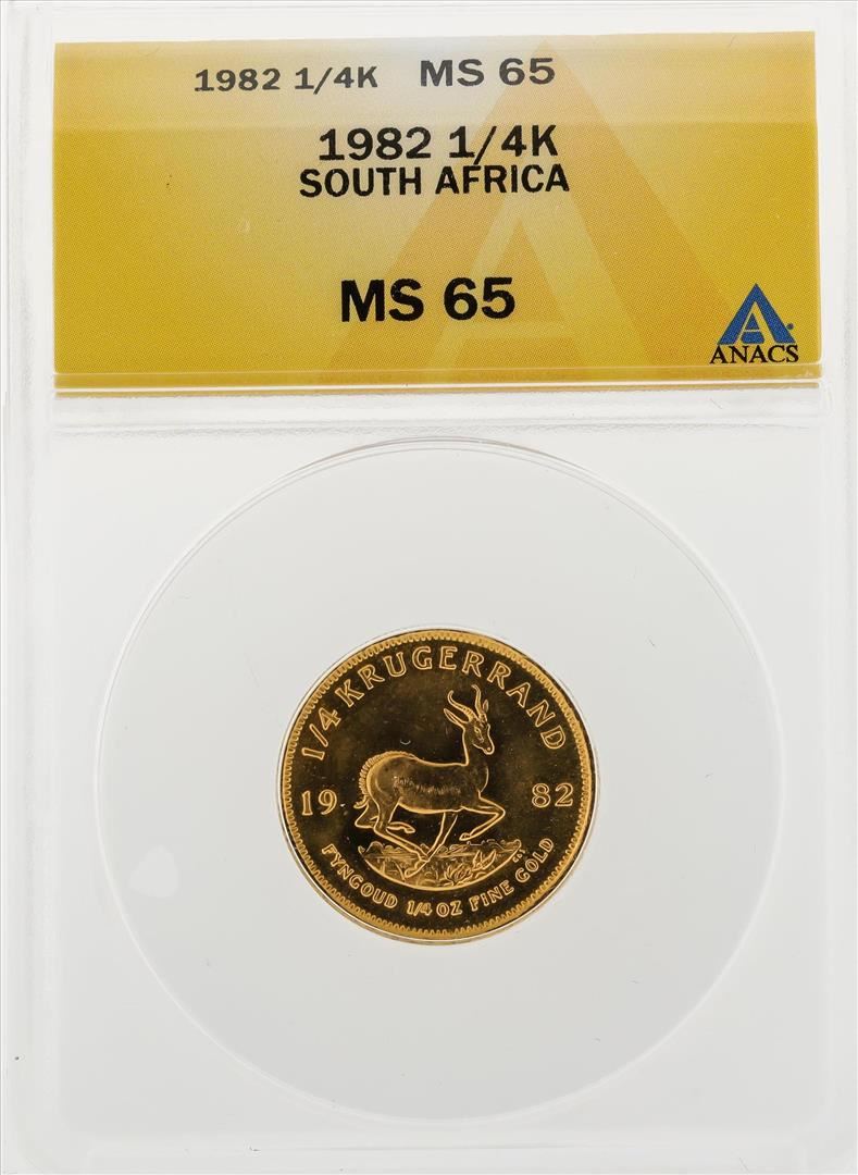One 1982 1/4 oz South Africa Krugerrand Gold Coin ANACS MS65. ANACS Certified.