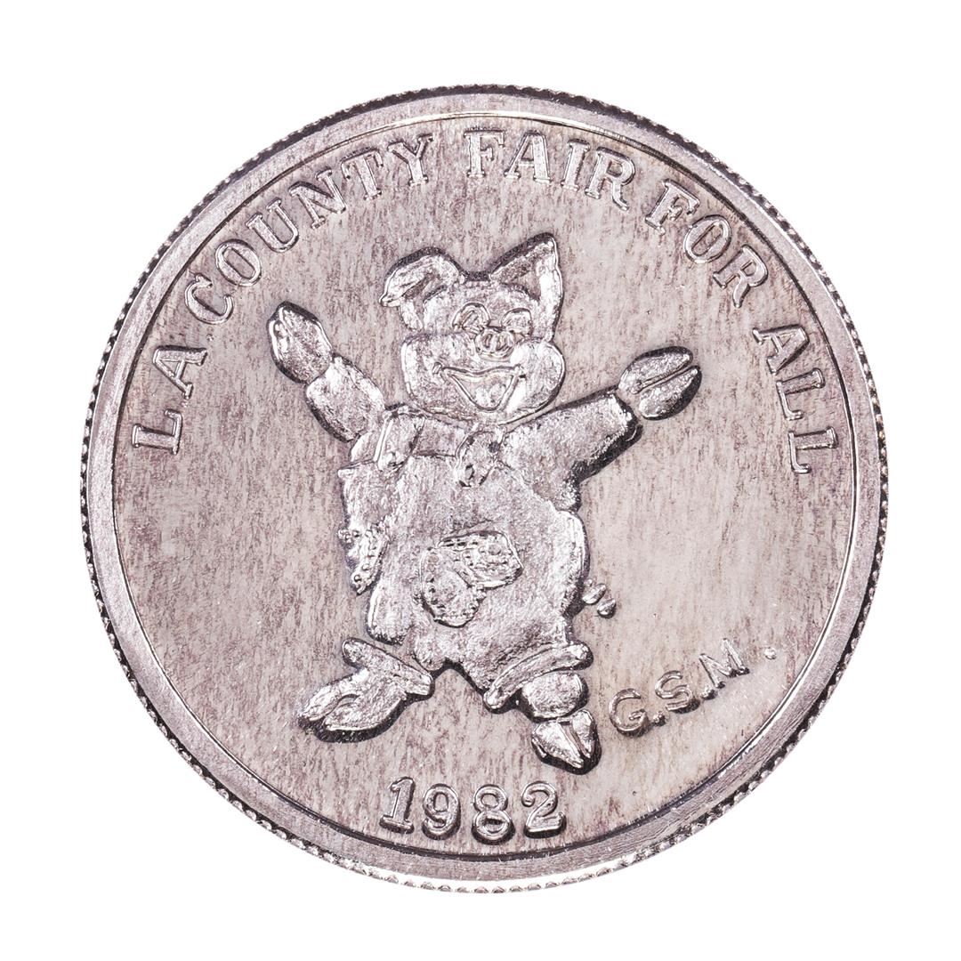 One 1982 L.A. County Fair for All 1oz .999 Fine Silver Art Round.